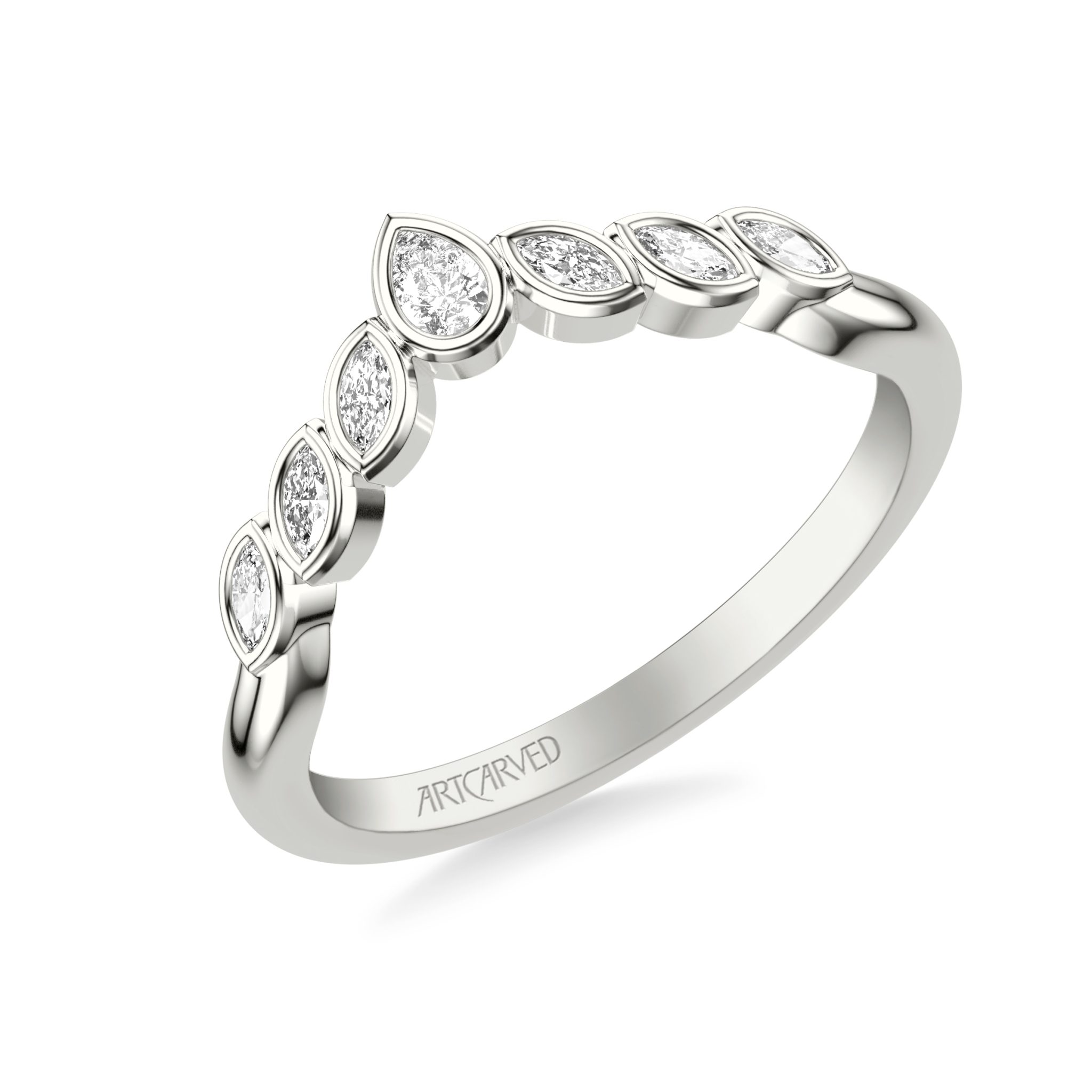Floral Curved Wedding Band with Bezel Set Marquise and Pear Diamonds