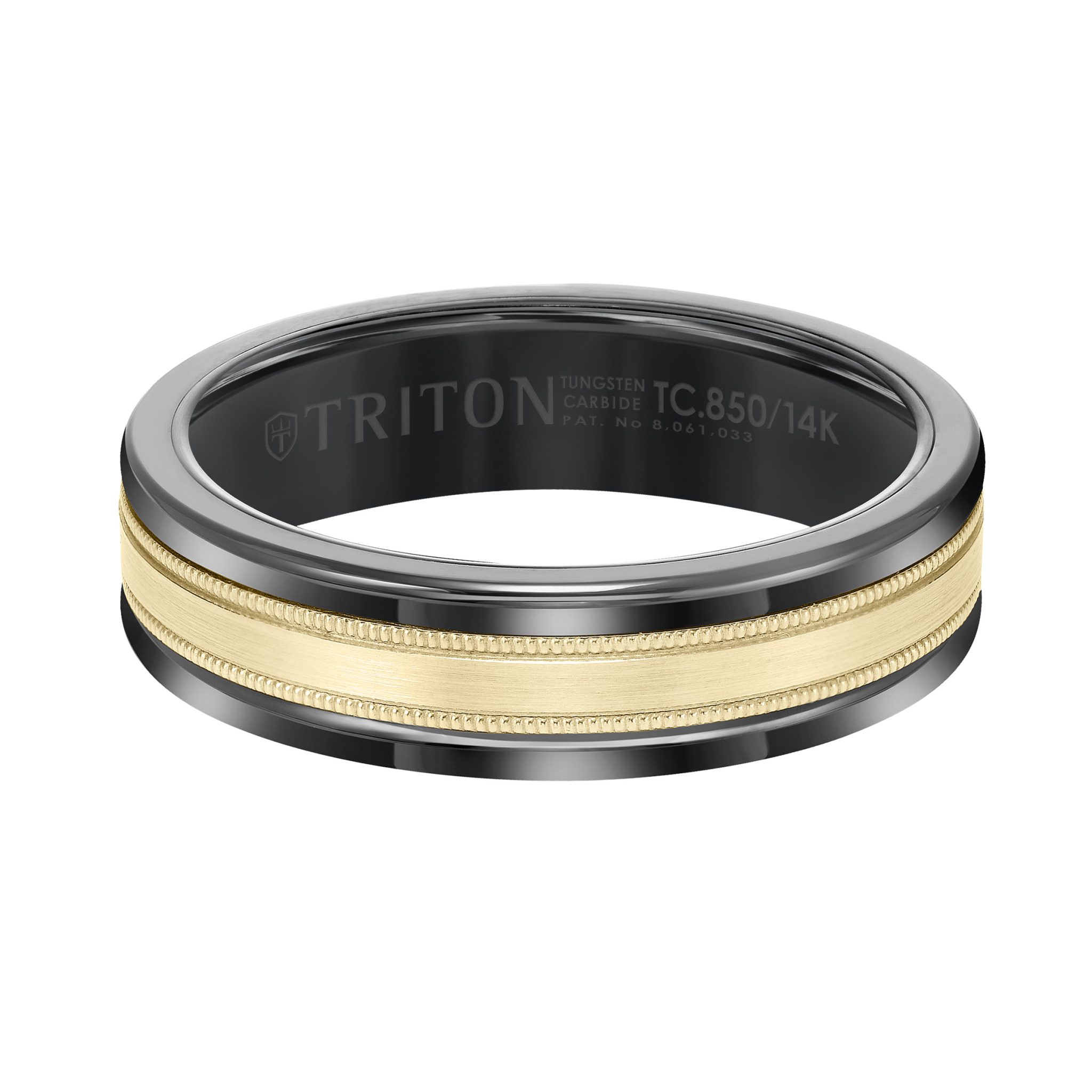 6mm Band with Black Tungsten Exterior and Flat Milgrain 14K Yellow Gold Core